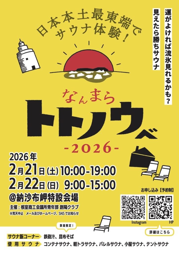サウナ入浴は各クール前日までお申し込み可能です。